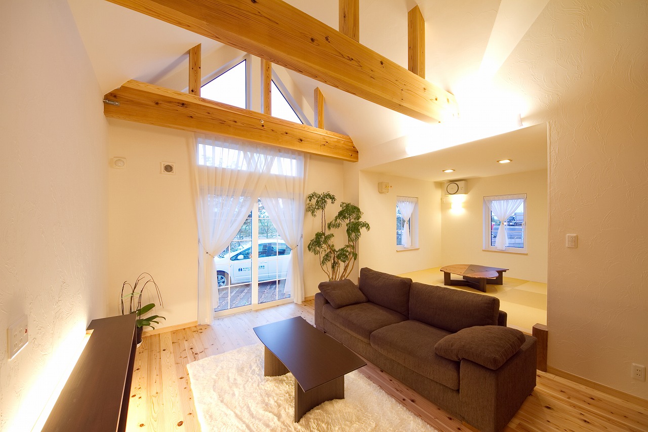 モデルハウスにはレースカーテンのみが設置されているので、さらに自然光が入りやすく電気をつけなくても明るい!電気を使わない自然光には省エネ効果があり、健康への効果も期待されます。窓から差し込んだ暖かい日の光の中で、ドラマを観たり、のんびりと日向ぼっこをしたり―――。そんな時間を過ごせたら最高だな~と、しみじみ感じます。