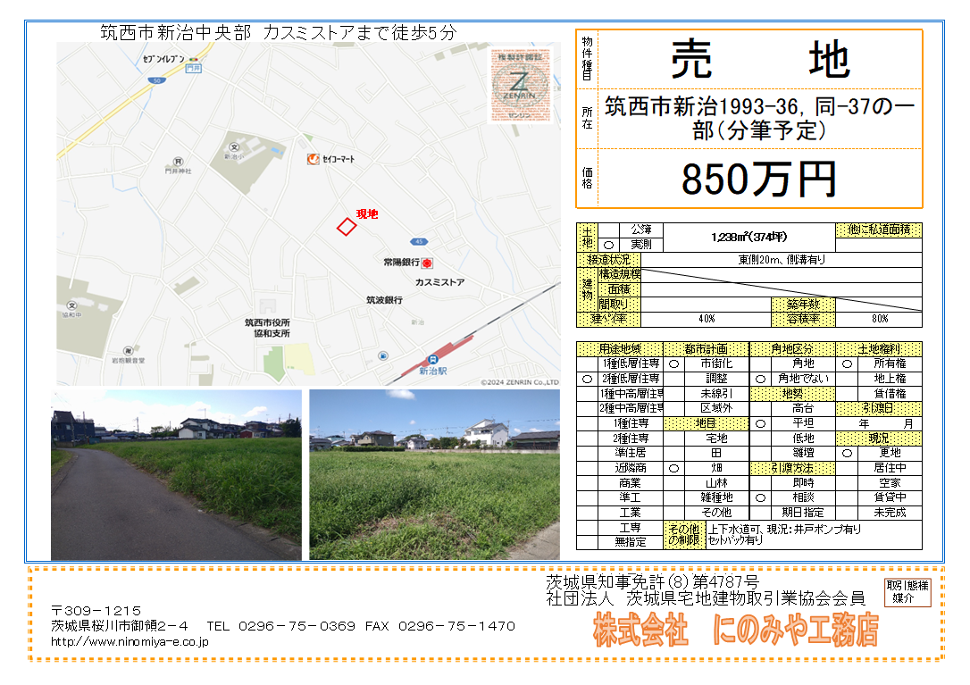 筑西市新治中央部 カスミストアまで徒歩5分 ※今後分筆予定です。