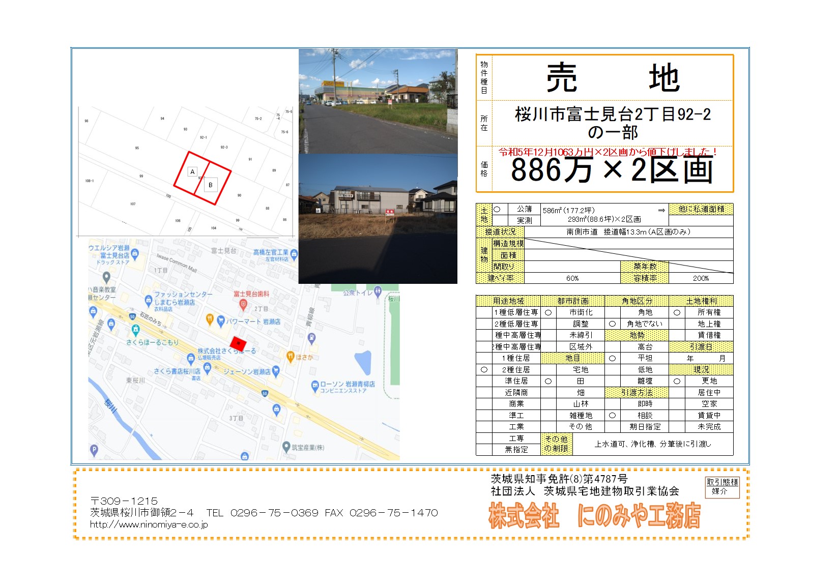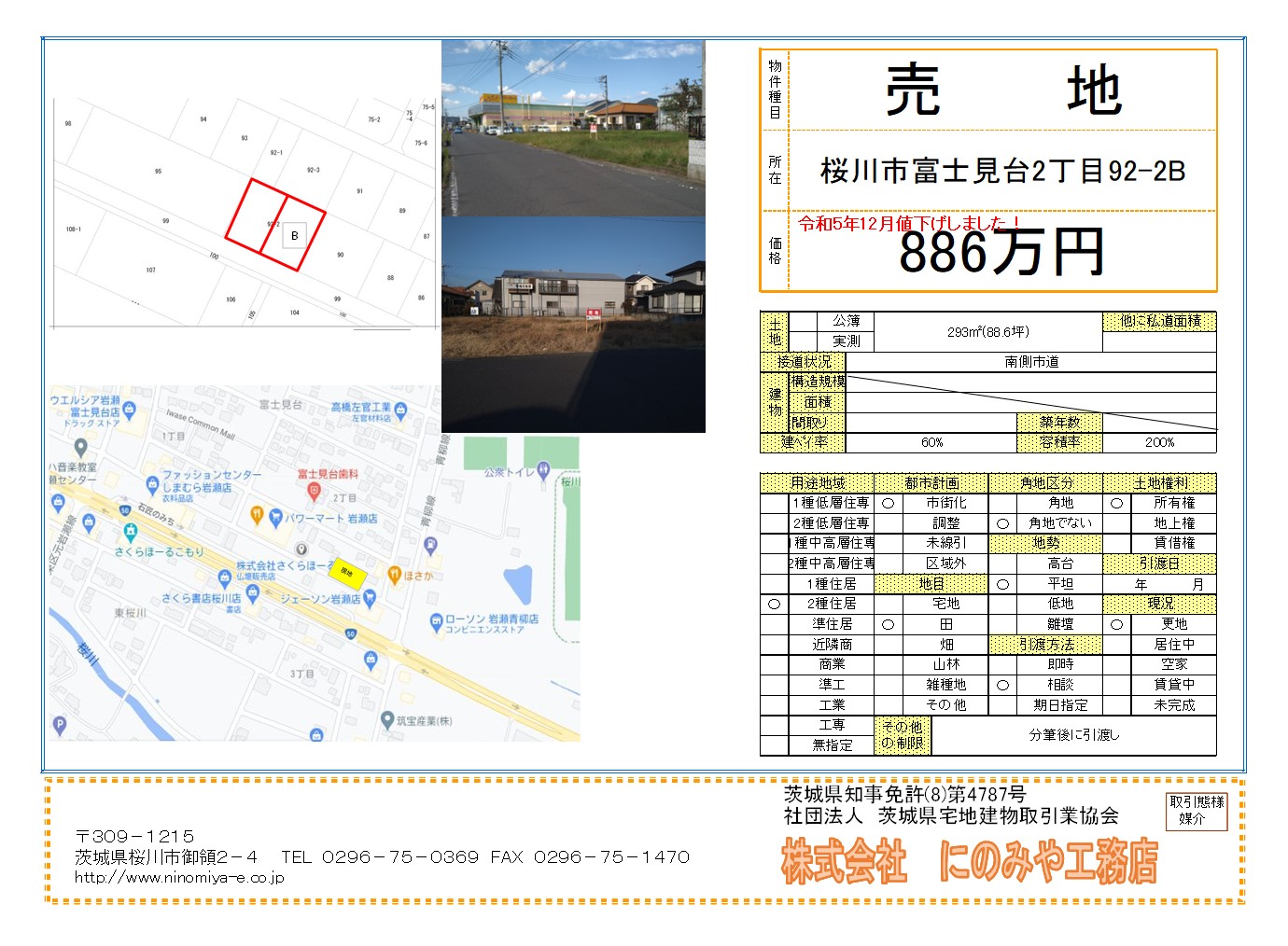 桜川市 富士見台 元パワーマート東側区画B | 売地