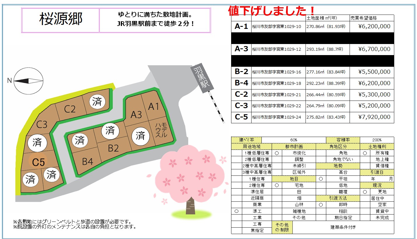 - 土地:520万円~792万円(詳細は画像表記載)